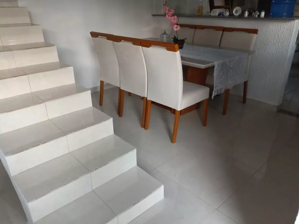 Casa 2 (sobrado): 02 dormitórios sendo uma suíte, sala, cozinha, área de serviço, sacada e banheiro social.