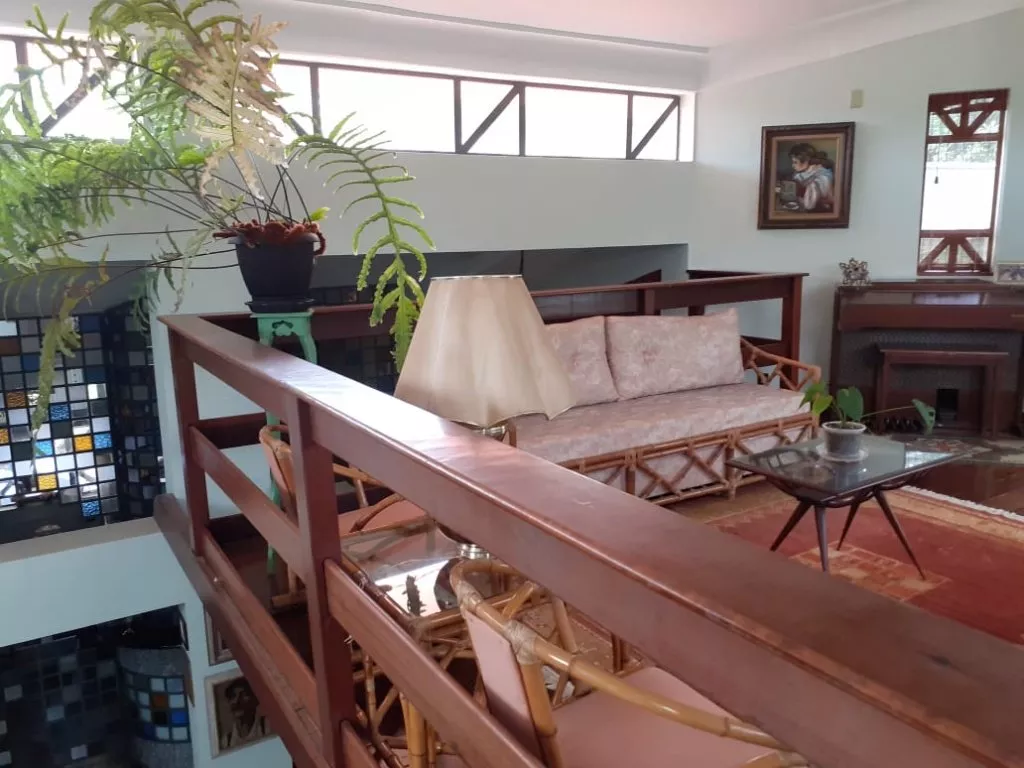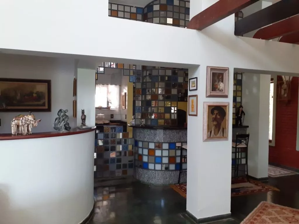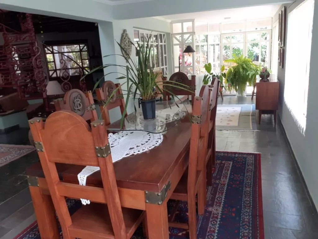 - 2 salas de estar com lareiras: sala de jantar; sala para almoço; mezanino; bar com churrasqueira e forno p/pizza;