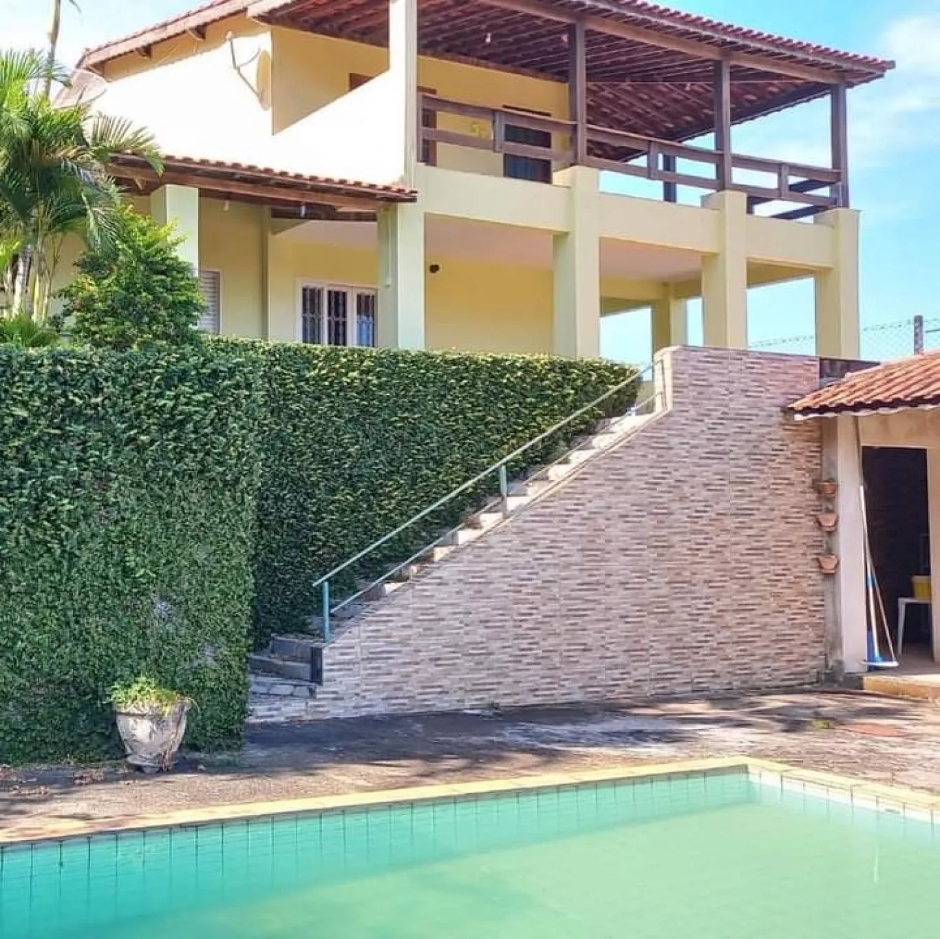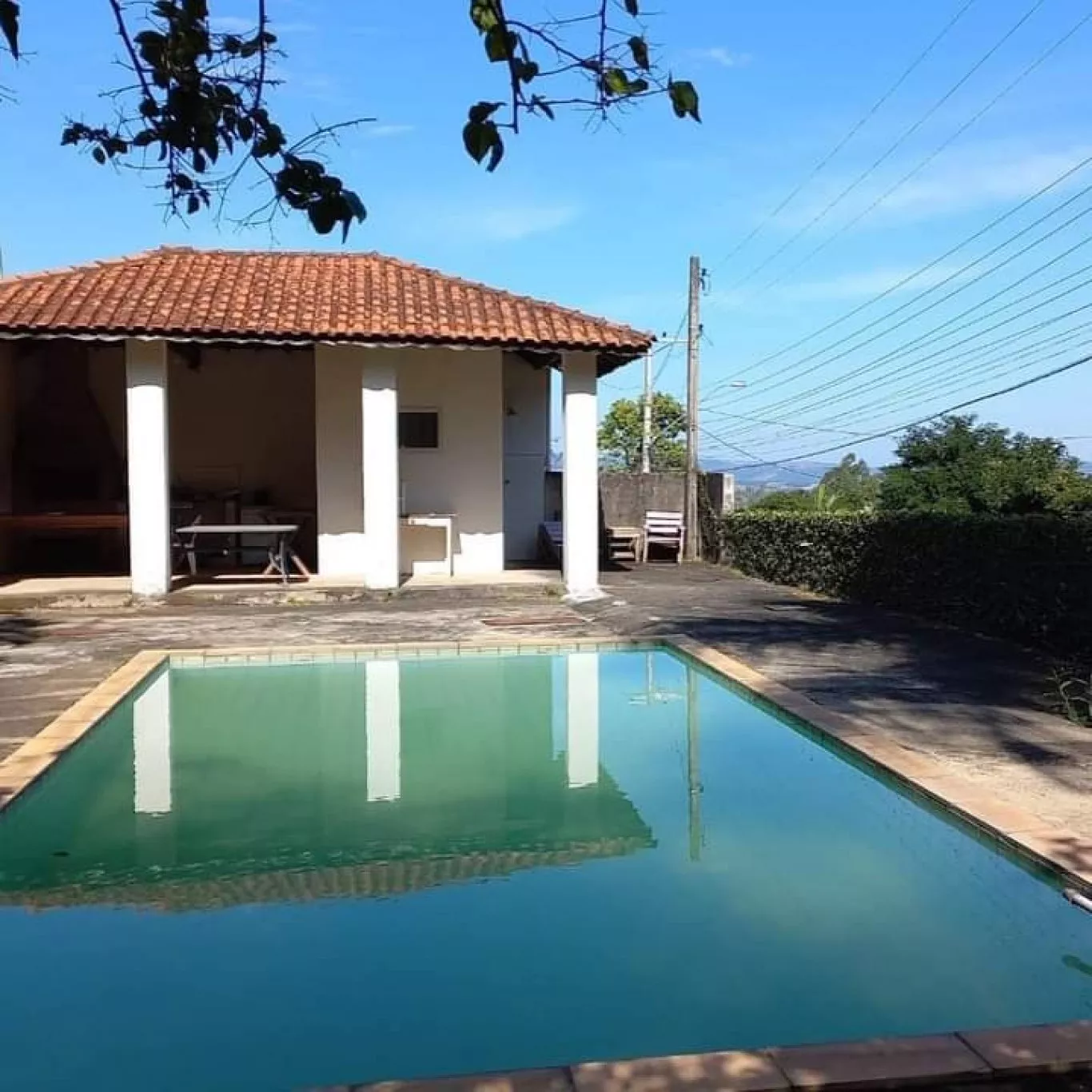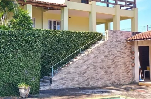 Chácara com 02 casas e maravilhosa área de lazer com piscina, churrasqueira e banheiro;