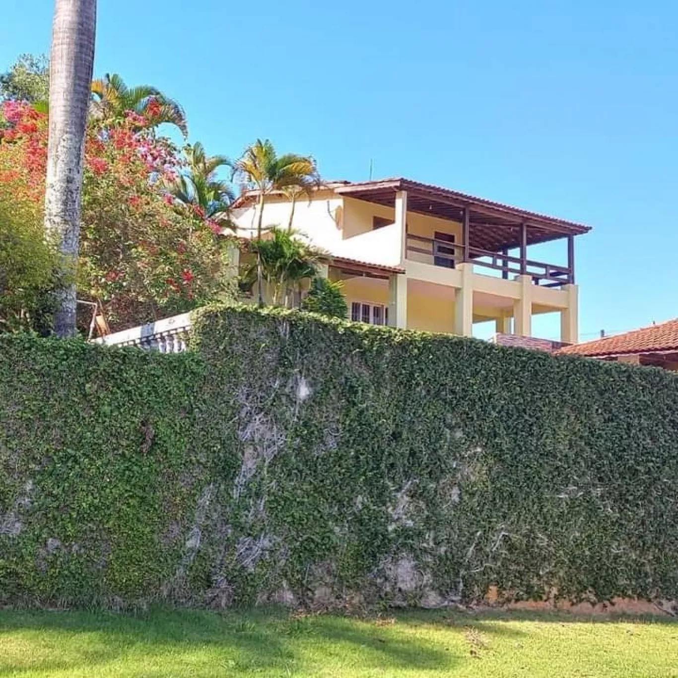 Casa inferior com 3 quartos, sendo um deles com suíte, sala, cozinha, sala de jantar, dispensa, banheiro social.